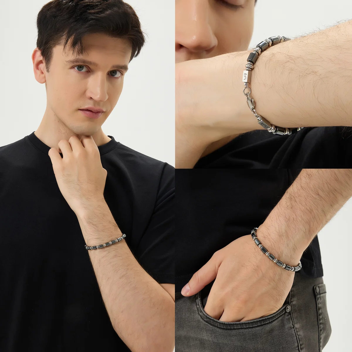 赤鐵礦古巴鏈手串,採用天然赤鐵礦材質,色澤深邃質感厚重。復古歐美風設計,展現男士硬朗氣質與獨特品味。日常佩戴可搭配休閒或正裝,適合追求個性與能量的時尚男士。