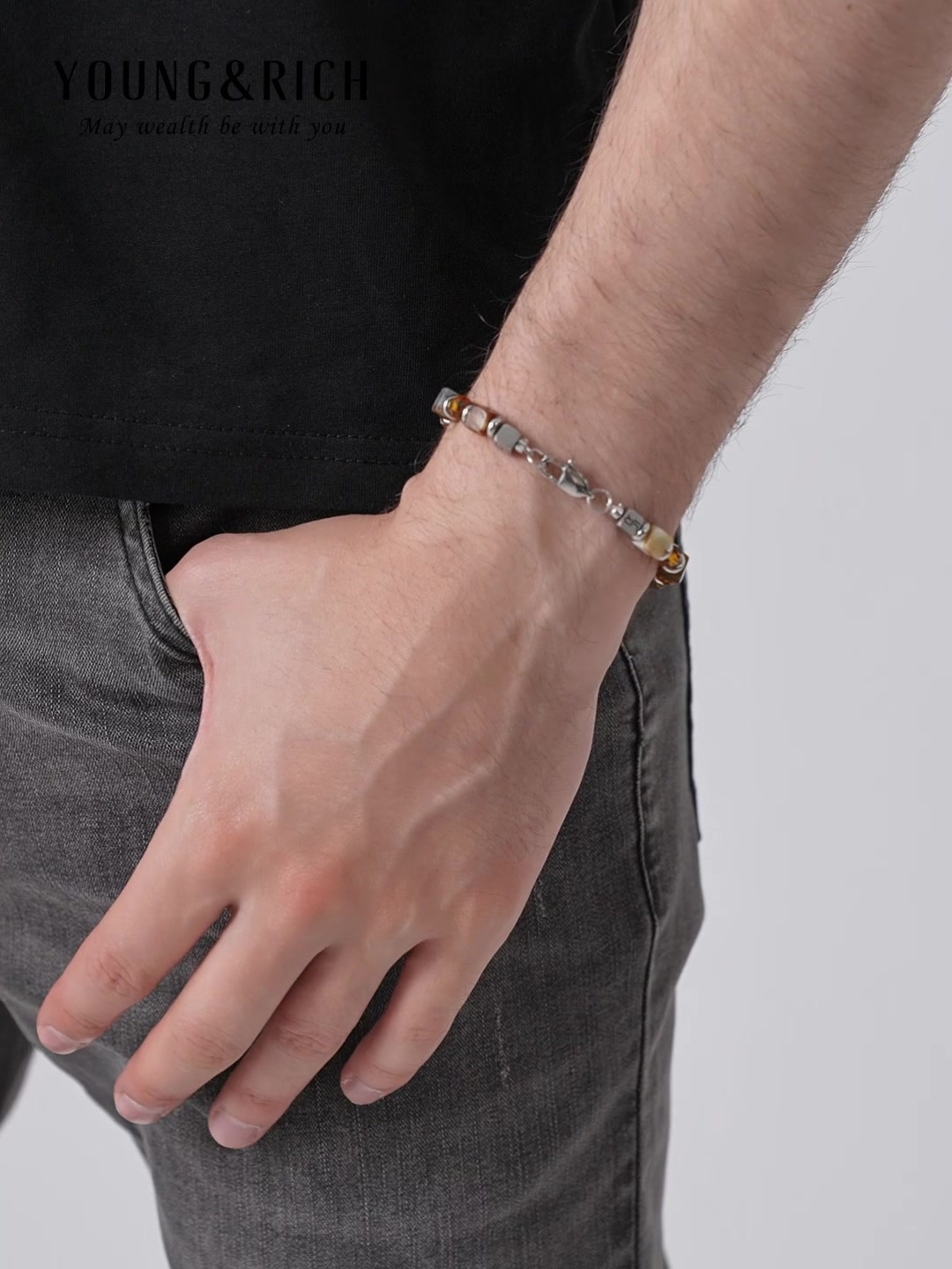 這款岫玉手鏈採用復古方形設計,6mm玉珠溫潤雅緻。純手工製作彰顯匠心,小眾設計盡顯獨特個性。歐美風格時尚百搭,是提升日常穿搭品味的點睛首飾。